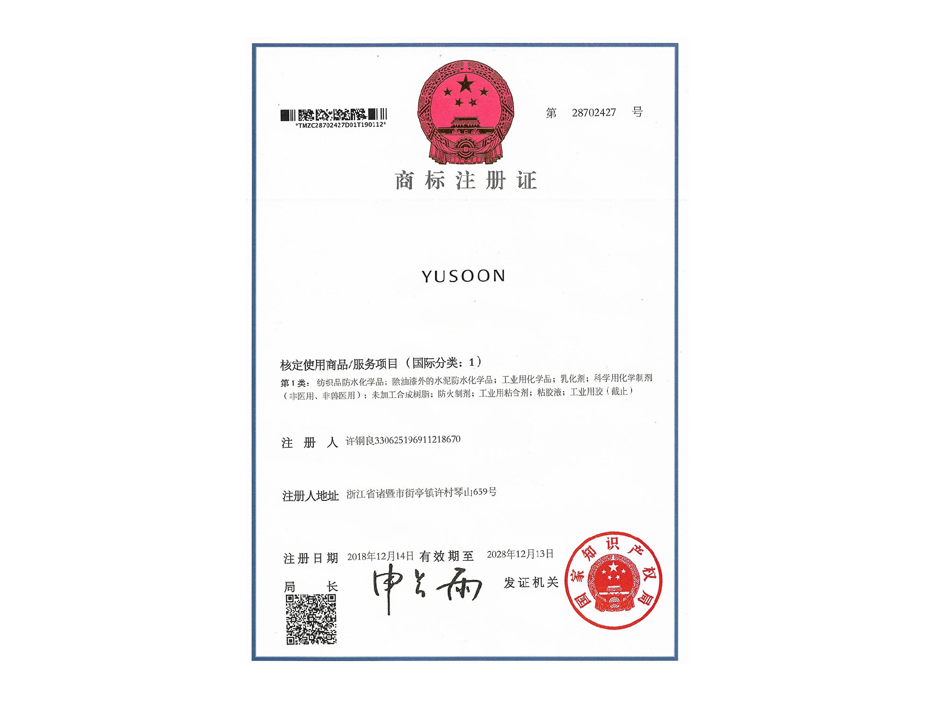 您的位置: 首頁>榮譽資質>商標證書