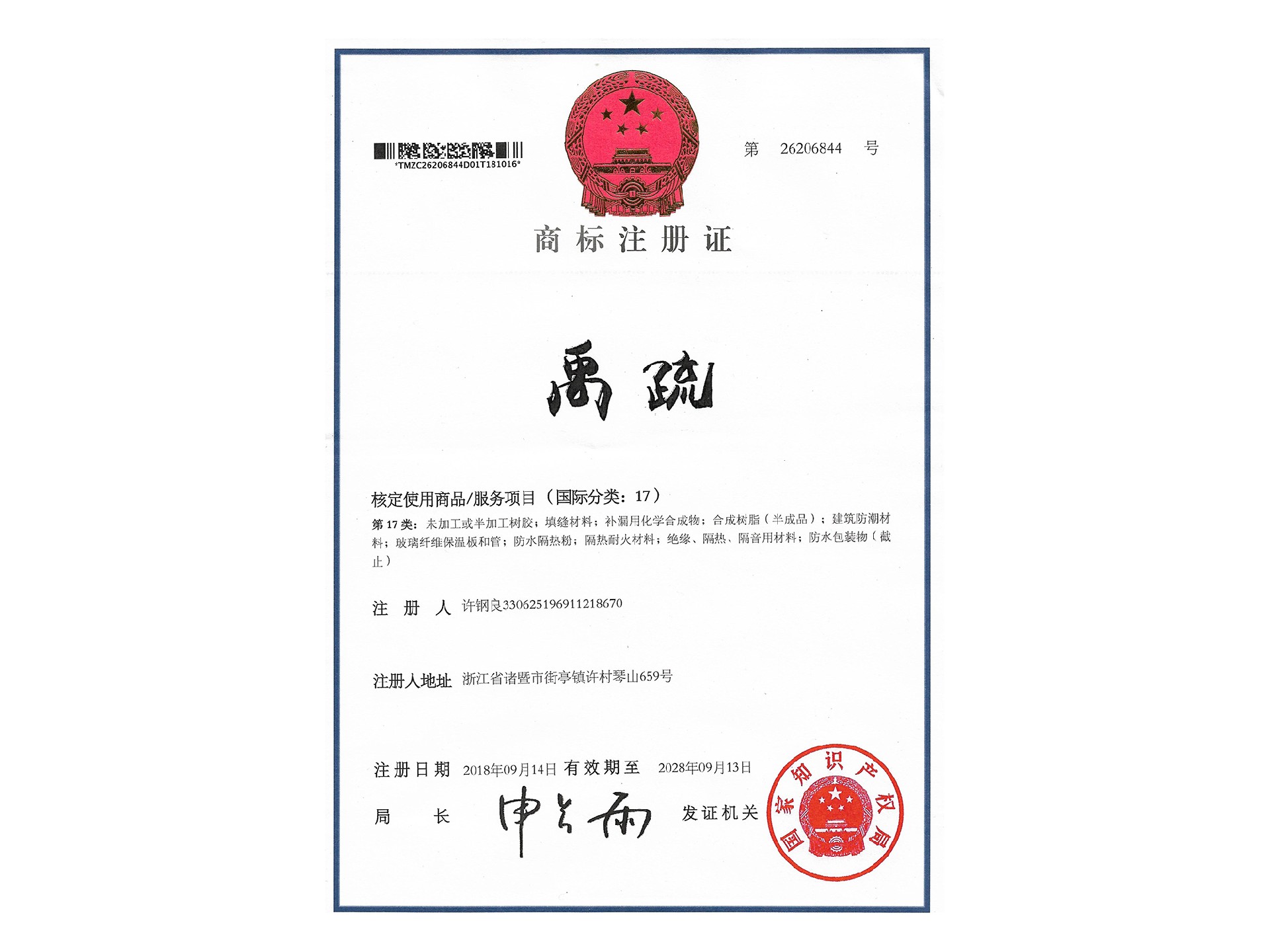 商標(biāo)證書(shū)